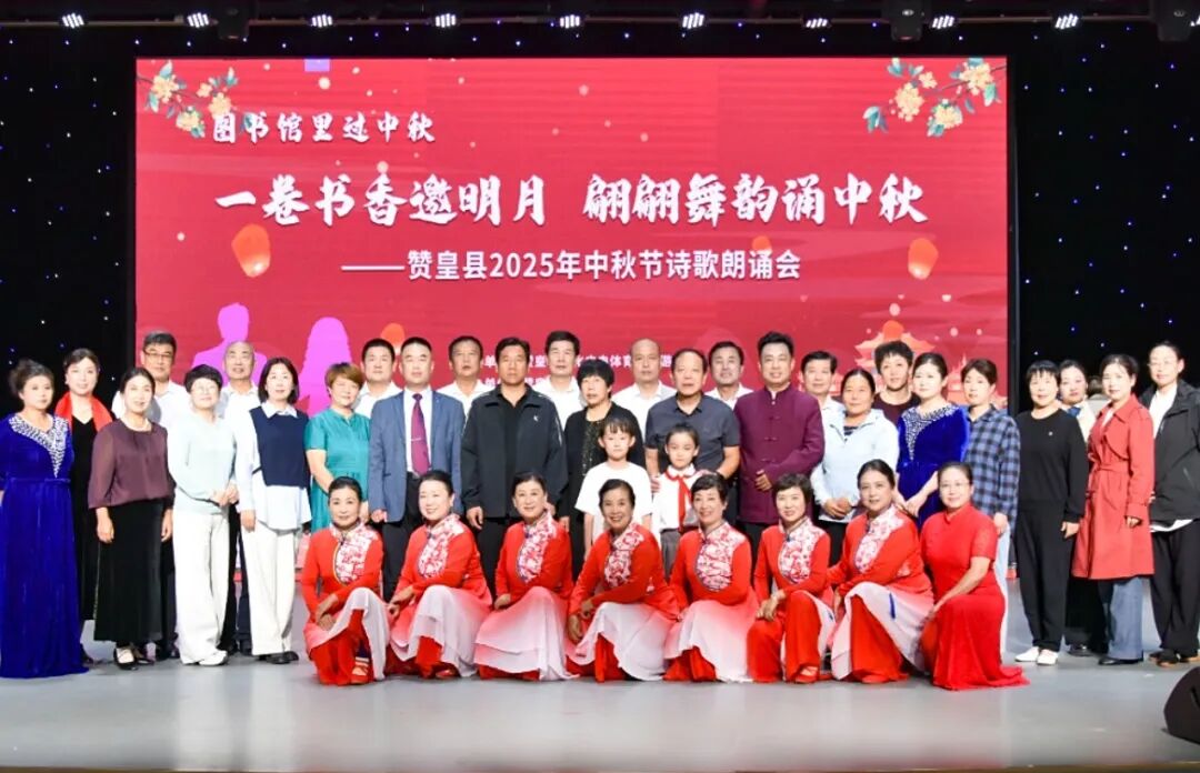 金秋送爽,丹桂飘香。为庆祝中秋佳节的到来,10月5日,由赞皇县文化广电体育和旅游局主办,赞皇县图书馆承办的“一卷书香邀明月,翩翩舞韵诵中秋”诗歌朗诵会在县文体中心举行。活动通过朗诵、舞蹈、合唱等多种形式,为现场观众呈现了一场兼具传统文化韵味与时代精神的视听盛宴。